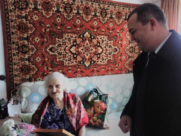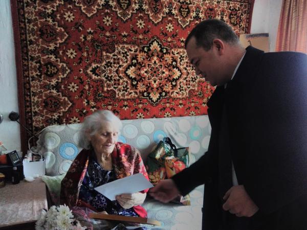 Глава муниципального образования село Кочубеевское Дудулад В.В. и специалисты администрации поздравили юбиляра ценными подарками, поздравительными адресами от президента Российской Федерации Путина В.В., и пожелали крепкого здоровья, бодрости духа, никогда не грустить.