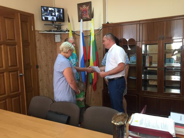 Настал долгожданный день для молодой семьи Ткачук Сергея Валерьевича, которая 22 июня 2018 года получила извещение о предоставлении социальной выплаты на приобретение жилья, как участнице программы "Обеспечение жильем молодых семей в село Кочубеевском". В данной семье 4 детей, все с нетерпением ждут переезда в новый собственный дом.
