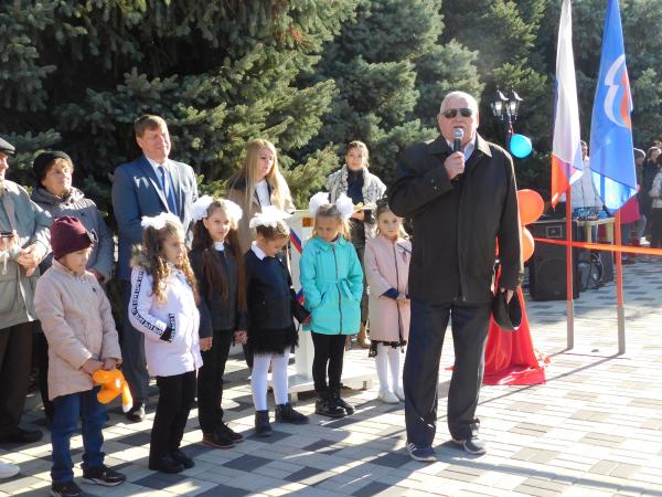 В рамках реализации проекта партии «Единая Россия» по программе «Формирование комфортной городской среды» состоялась торжественная церемония открытия благоустроенного сквера с красочным фонтаном.