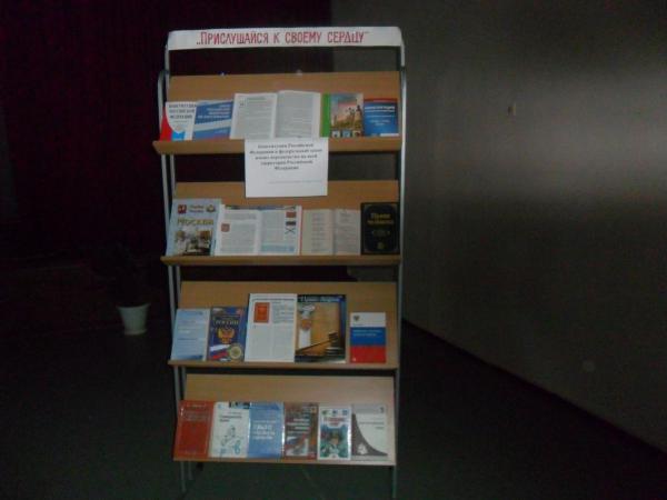 Работники Кочубеевской сельской библиотеки № 2 и Кочубеевского гуманитарно-технического колледжа филиала НГГТИ провели урок права на тему: «Я гражданин и патриот России». К мероприятию подготовлена книжная выставка на тему: «Прислушайся к своему сердцу». На выставке была представлена литература о Конституции Российской Федерации, статьи из журналов. Библиотекарь Манчук Е.П. рассказала, что каждый, из присутствующих является гражданином России. Но мало называться, надо им быть! Из сказанного заведующей библиотекой Колобовой Т.А. подростки узнали, что 12 декабря 1993 года всенародным голосованием была принята, ныне действующая Конституция Российской Федерации. Конституция – основной закон государства, имеющий высшую юридическую силу на всей территории России. Путин Владимир Владимирович является главой государства, гарантом Конституции Российской Федерации, прав и свобод человека и гражданина.