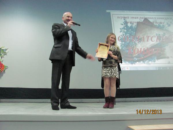 В культурно-досуговом центре кинотеатре «Спутник» 14 декабря 2013 года прошел первый этап районного конкурса патриотической песни «Солдатский конверт». По сложившейся традиции конкурс проводился в целях патриотического воспитания молодежи на примере лучших музыкальных произведений.