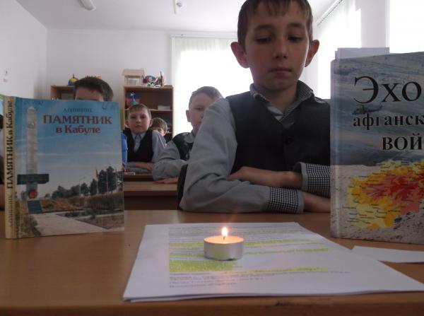 «Афган - ты боль моей души», под таким названием прошел классный час в 4 «В» классе МОУ СОШ № 2 (классный руководитель Чепаченко Наталья Владимировна). Классный час был посвящен 25- летию вывода советских войск из Афганистана. Ребята с интересом слушали библиотекаря сельской библиотеки № 1 Тимошенко И.В. Ирина Валентиновна познакомила учеников с краткой историей боевых действий в Афганистане, рассказала о мужестве, патриотизме советских солдат, исполнявших интернациональный долг. Ребята узнали о погибших кочубеевцах в ходе этой войны. Были показаны фотографии и названы фамилии погибших земляков. Зачитали отрывки из книги «Эхо Афганской войны». Вниманию ребят была представлена презентация о подвиге советских солдат, показан видеоролик о событиях Афганской войны. Прозвучала песня «Далекий Кабул» в исполнении В.Танцева.