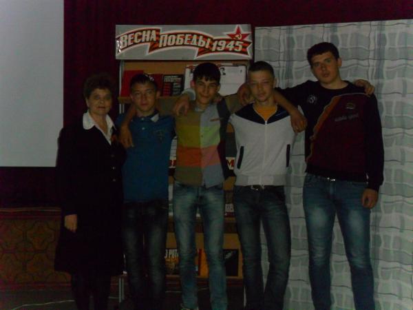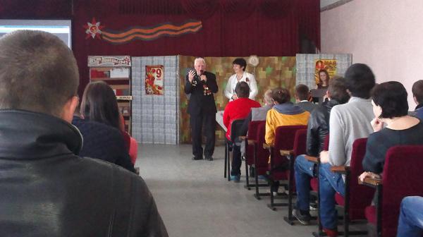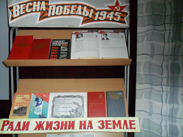 В рамках районной акции «Я помню, я горжусь!», в актовом зале Кочубеевского гумманитарно-технического колледжа филиала НГГТИ 08 мая 2014 года работники Кочубеевской сельской библиотеки № 2 совместно с преподавателем Галицыной Г.Ю. провели литературно - музыкальную композицию на тему: «Поклон глубокий до земли солдатам павшим и живущим». Была оформлена книжная выставка «Весна Победы 45" с подразделом «Ради жизни на земле». На книжной выставке представлены лучшие произведения художественной литературы о войне: книги Б. Васильева, В. Богомолова, В. Быкова и других, провели обзор литературы на тему: «Навеки – восемнадцатилетние». Со славной даты 09 мая 1945 года прошло 69 лет, но мы снова и снова вспоминаем о ней, тревожа старые раны ветеранов-фронтовиков. Об этом говорит и цитата к книжной выставке: