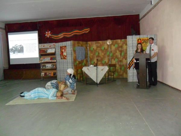 Ребята нарисовали плакат – «Помнит мир спасенный». На мероприятие был приглашен ветеран войны Барбаев Василий Игнатьевич. Василий Игнатьевич рассказал ребятам, о той страшной войне. Его рассказы, бесценные живые свидетельства того времени. Для ветерана и пришедших на мероприятие были исполнены песни, прочитаны стихи и поставлены сценки о войне, о любви к Родине.