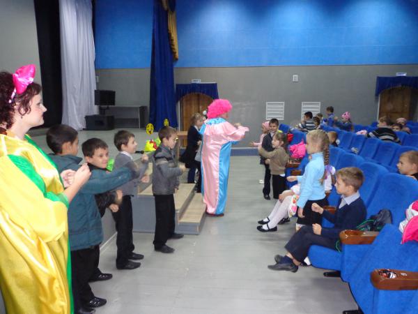 А еще ребята вместе с клоунами разучили веселый танец из мультфильма «Фиксики» с необычным названием - «Дрыц-тыц помогатор». Озорные, ритмичные движения не оставили никого равнодушными. Ноги сами просились в пляс. Каждый смог проявить свои способности в танце.
