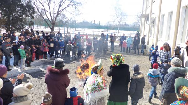 участвовали в конкурсах, народных играх. На протяжении всего праздника звучали русские народные песни, дети водили хороводы вокруг чучела Масленицы, отвечали на вопросы викторины о празднике .